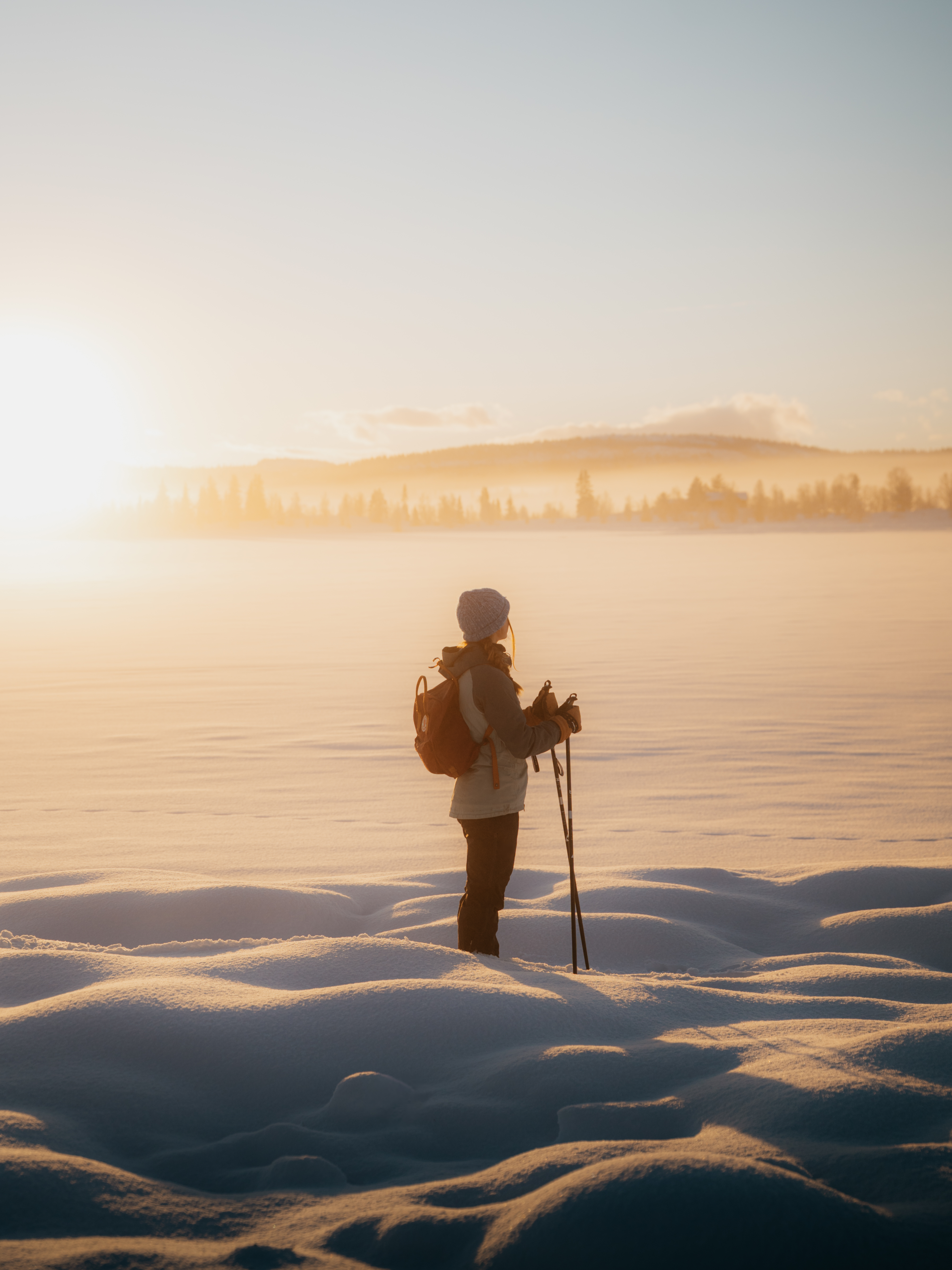 Fotorgrafen selv om bildet: Bildet er tatt på sesongens første fjellskitur i Valdres, i starten av desember. Det hadde vært tåke hele dagen, og etter en rolig hyttemorgen og x-antall seiere i kortspill dro vi ut for å få litt frisk luft. Etterhvert klarte sola å bryte seg gjennom tåka og vi fikk et vidunderlig lys. Den var en helt magisk gyllen time, som etterhvert gikk over til de duse rosa og lilla pastellfargene som man får på kalde vinterettemiddager. Det hadde også snødd litt den natta, så vi labba gjennom masse puddersnø. Ikke nødvendigvis drømmeføret for oss på fjellski, men det gjorde at det ble skikkelig fin vinterstemning på terrenget rundt oss, så vi kan på ingen måte klage. Vi var bare ute i en times tid, og jeg synes denne turen er et godt eksempel på at man ikke trenger å gå langt om lenge for å få fine naturøyeblikk på vinteren.