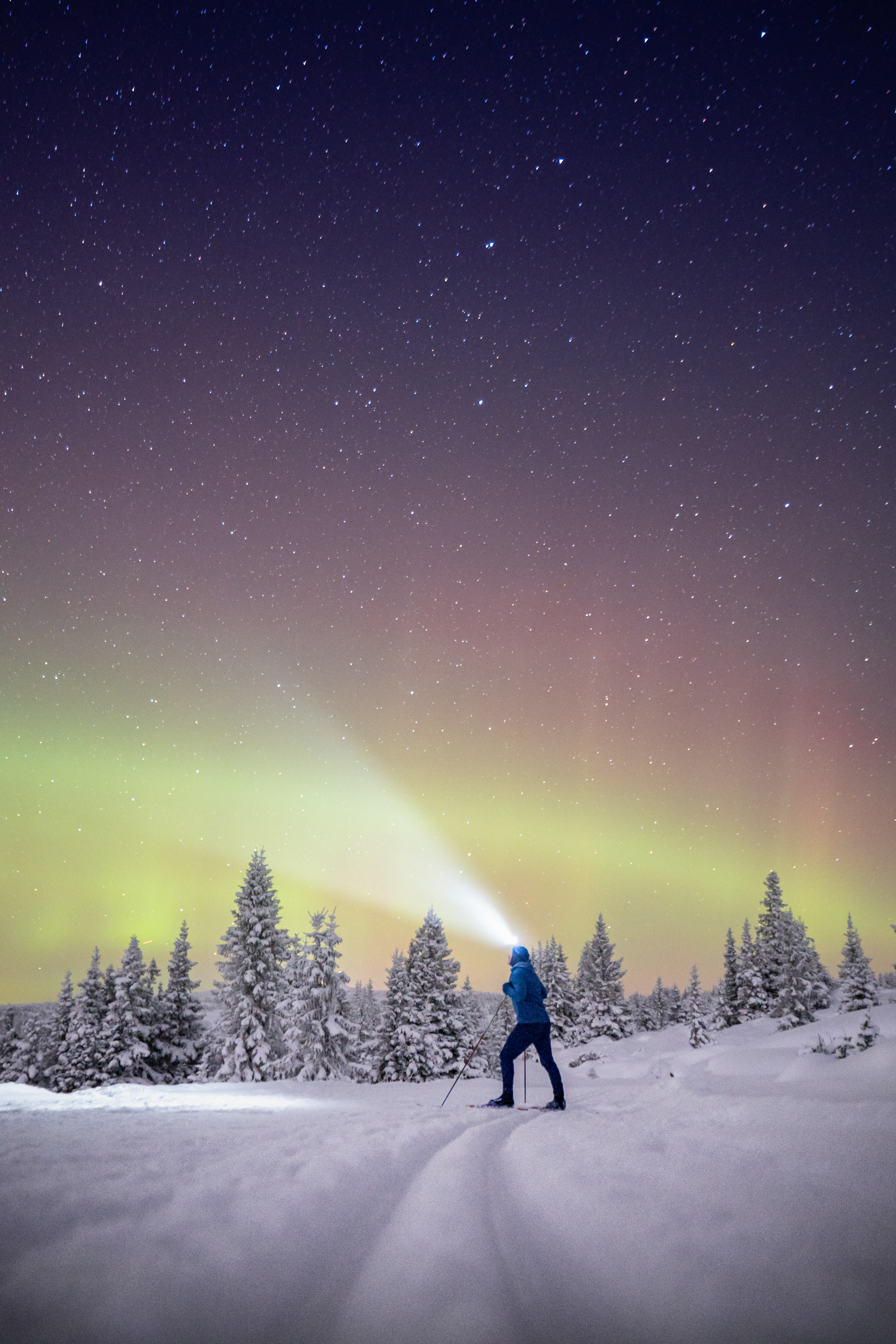 Fotografen selv om bildet: Jeg dro ut en sen kveld på Nordseter i januar. Bilen viste -19 grader og over meg var det ingen skyer, bare millioner av stjerner. For å se stjernene best mulig, lot jeg hodelykta være avskrudd. Og etter noen kilometer innover i fjellet, begynte jeg å legge merke til nordlyset. Først så svakt at jeg ikke hadde lagt merke til det hvis det hadde konkurrert med hodelykta. Så sterkere. Der noen bare ser mørket, fikk jeg se en fantastisk stjernehimmel og nordlyset. Det er noe magisk med slike vinteropplevelser!